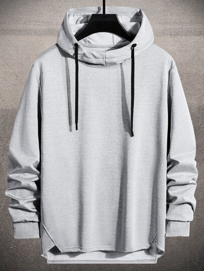 Manfinity Homme 男士開衩下擺抽繩連帽衫 - 淺灰色 - 查看 1