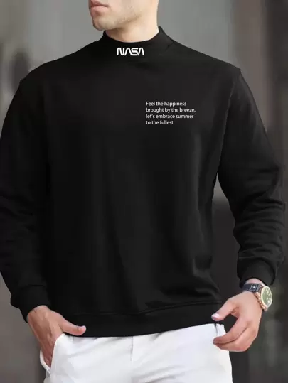 Manfinity Homme 男士標語圖案小高領運動衫 - 黑色 - 查看 1