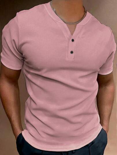 Manfinity Homme 男士純色釦前T恤 - 粉色 - 查看 1