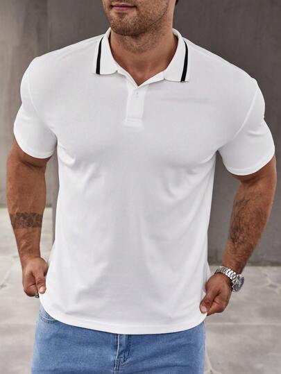 Manfinity Homme 男士純色短袖polo衫 - 白色 - 查看 1