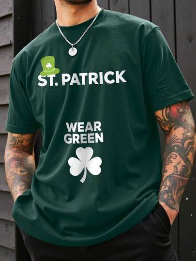Manfinity Homme 男士简约印花圆领短袖T恤 - 綠色 - 查看 1