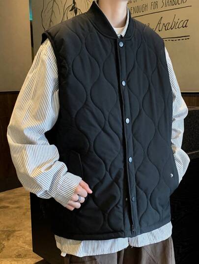 Manfinity Hypemode 1件男士寬鬆鈕扣背心棉絨夾克 - 黑色 - 查看 1