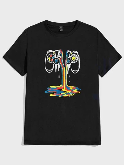 Manfinity VCAY 男士卡通圖案T恤 - 黑色 - 查看 1