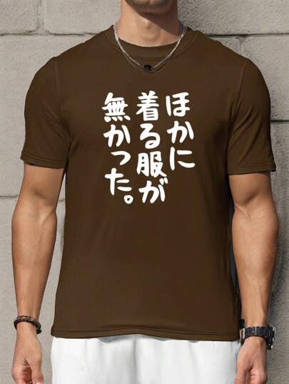 Manfinity Hypemode 男士休闲日文文字图案短袖 T 恤,夏季 - 棕色 - 查看 1