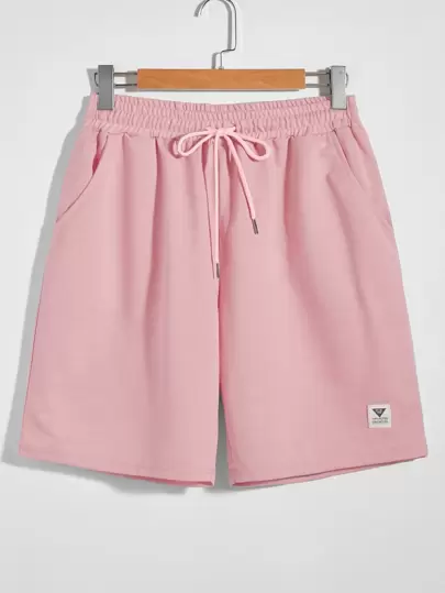 Manfinity Hypemode 寬鬆版型男士短褲,字母縫補,束口腰帶 - 淺粉色 - 查看 1