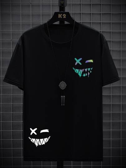 Manfinity Hypemode 男士反光卡通圖案T恤 - 黑色 - 查看 1