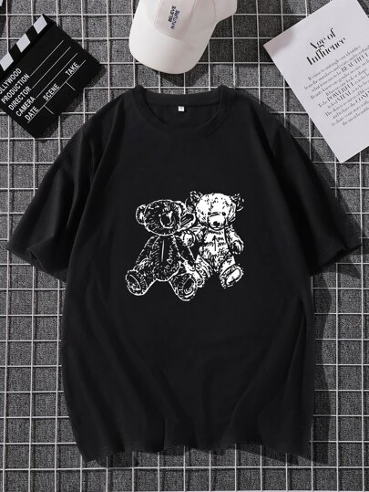 Manfinity 男士小熊印花小圓領T恤 - 黑色 - 查看 1
