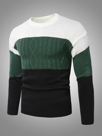 Manfinity 男士撞色麻花編織套頭毛衣 - 彩色 - 查看 1