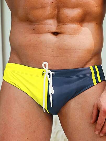 Manfinity 男士撞色腰部抽繩泳褲 - 彩色 - 查看 1