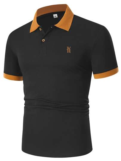 Manfinity 男士字母圖案拼接邊POLO衫 - 黑色 - 查看 1