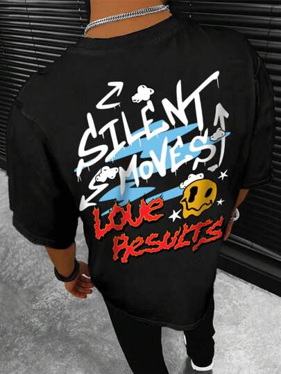 Manfinity EMRG 男士卡通印花短袖t恤 - 黑色 - 查看 6
