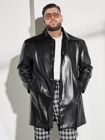 EASEVO 宽松男式斜口袋 PU 皮大衣 - 黑色 - 查看 1