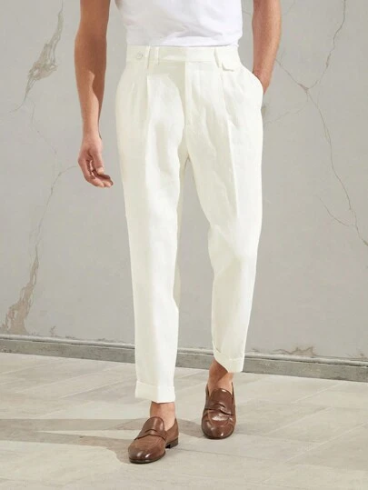 Manfinity Mode 男士褶皺細節斜口袋西裝褲 - 白色 - 查看 1
