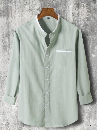 Manfinity Homme 男款素色簡約長袖襯衫(現貨) - 綠色 - 查看 1