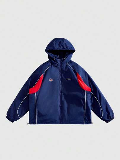 Manfinity VCAY 大码男士休闲拼接插肩袖宽松连帽夹克,冬季外套 - 彩色 - 查看 1