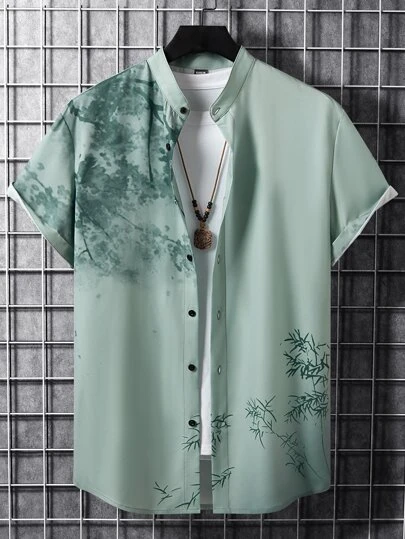 Manfinity RSRT 男士植物圖案襯衫不帶T恤 - 薄荷綠 - 查看 1