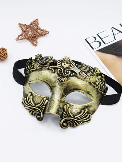 男士假面舞會面具金色羅馬希臘風格服裝面具威尼斯派對面具嘉年華面具角色扮演派對面具運動遊戲歡呼面具 - 金色 - 查看 1