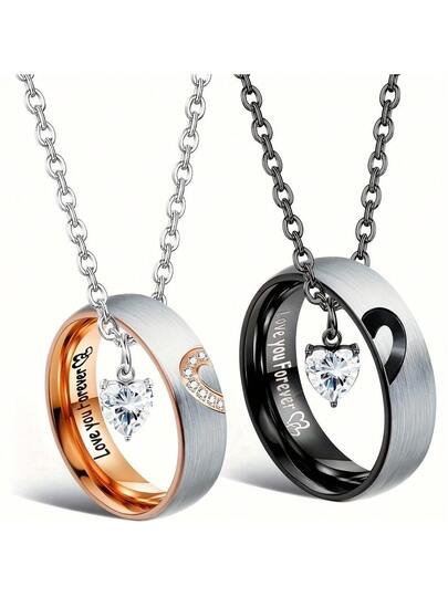 Matching Necklaces For Couples Pendant Necklace For Women Men Matching Promise Rings Pendant Set Stainless Steel Couple Necklace For Him And Her Anniversary Valentine'S Day Jewelry Gift