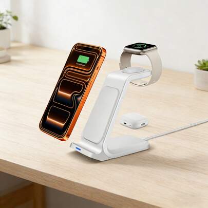 Matching Style Vol. 2 高品质无线充电器 15W 快充站,兼容 17/16/15/14 Pro Max/13/12/11/8/XS/XR/X,三合一充电底座,兼容多种设备,适用于 11/10/9/8/7/6/5/4/3/2/SE/Ultra 系列,兼容 4/3/2 Pro,情人节礼物 - 白色 - 查看 1