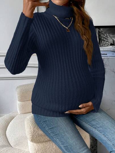 SHEIN 孕妇高领长袖毛衣,适合冬季 - 藏蓝色 - 查看 1