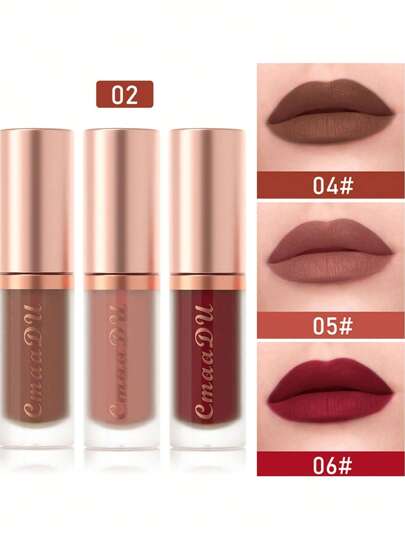 啞光唇膏3入組天鵝絨唇彩易於塗抹 - 彩色 - 查看 8