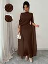 Aloruh 女士优雅派对纯色不对称领口连衣裙