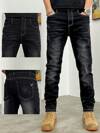 男士猫抓纹理弹力修身锥形口袋直筒牛仔裤,宽松长款,马蹄形水洗,复古蓝,Y2K风格,适合与朋友休闲外出