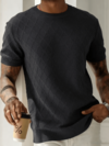 男士舒适简约纽扣装饰长袖圆领毛衣,休闲百搭,适合日常穿着,秋冬