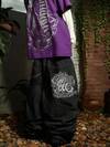 1件 Hearty Haven 男士复古做旧宽松阔腿牛仔裤,休闲街头风长裤(不含腰带或配饰)