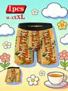 1件个性化印花男士平角内裤,趣味茉莉花茶印花,舒适耐穿,适合所有季节和场合