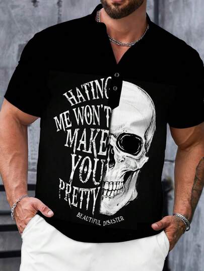 男款休閒舒適3D數字印花POLO衫 - 黑與白 - 查看 3