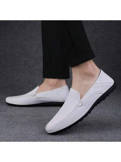 男士休闲舒适乐福鞋,防滑驾车鞋 - 白色 - 查看 1