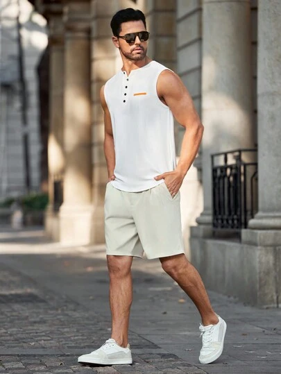 Manfinity Homme 男士休闲简约编织带装饰上衣 - 白色 - 查看 5