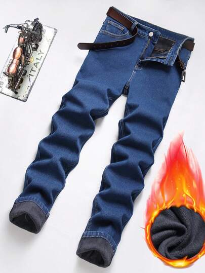 Manfinity Homme 男式休闲修身保暖内衬口袋牛仔裤 - 中等水洗藍 - 查看 1