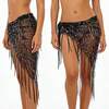 一件式女士肚皮舞服装,三角形设计,腰链饰有亮片和流苏,纱丽式缠绕款式,适合狂欢节、派对、夜总会、海滩、异域风情、波西米亚风、复古风等场合。