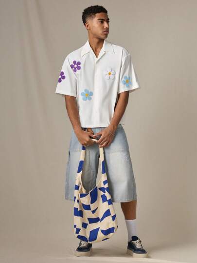 Manfinity VCAY 男士梭织时尚休闲宽松短袖衬衫,适合年轻人和日常穿着 - 白色 - 查看 1