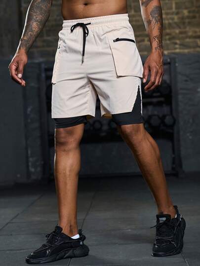 Manfinity Sport Corelite 男士二合一运动短裤(带手机口袋) 男士短裤 男士短裤套装 男士夏季短裤 男士短裤套装 运动裤 - 彩色 - 查看 1