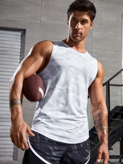 Manfinity Sport PWRUP 男友风男士迷彩圆领日常健身运动背心 - 彩色 - 查看 1