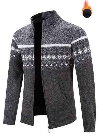 男士几何图案拉链开衫,透气抗菌 - 黑色 - 查看 1