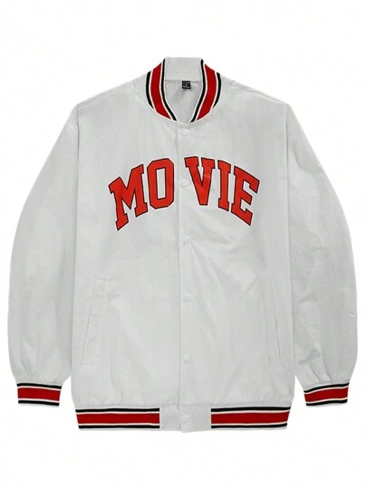 Manfinity Sport Corelite 男式字母图案条纹装饰斜口袋飞行员夹克运动上衣 - 紅白色 - 查看 2