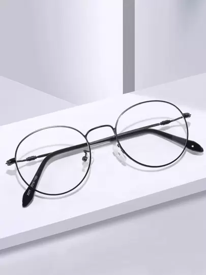 一副男士时尚双梁圆形眼镜,款式新颖,适合户外佩戴 - 黑色 - 查看 1