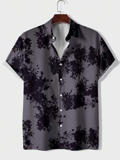 男士植物印花襯衫 - 淺灰紫 - 查看 1