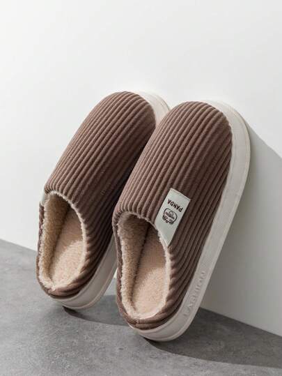 男士簡約豎條紋蓬鬆臥室拖鞋,面料時尚拖鞋 - 咖啡棕 - 查看 1