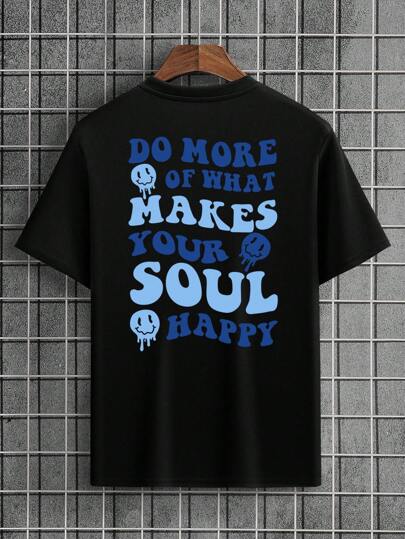Manfinity Dauomo 男士標語和卡通圖案T恤 - 黑色 - 查看 1