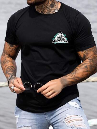 Manfinity 男士印花T恤 - 黑色 - 查看 1