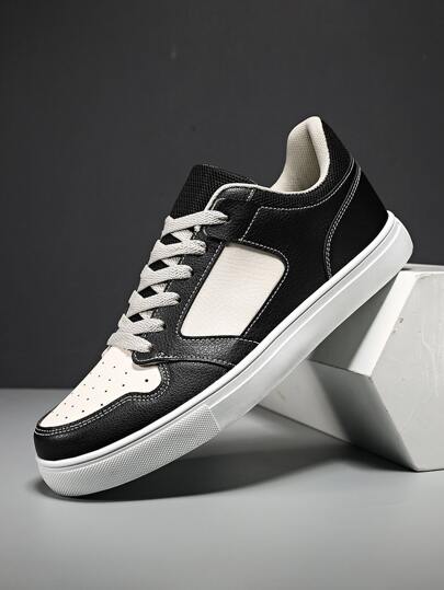 男士雙色前綁帶板鞋 - 黑與白 - 查看 1