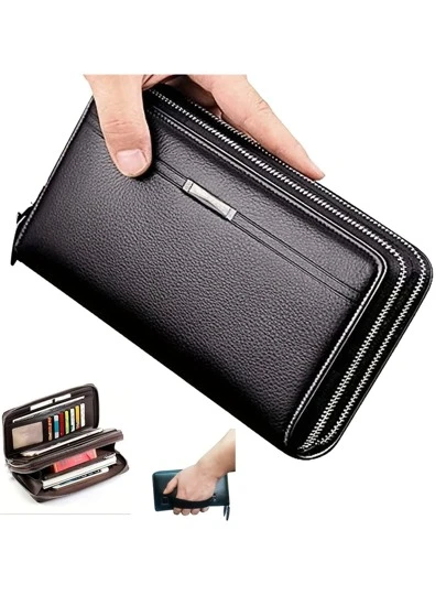 男士钱包 PU 皮革手拿包大号商务手提包手机卡包礼物父亲儿子丈夫男朋友男士钱包真皮手拿包大号商务手提包手机卡包礼物父亲儿子丈夫男朋友男士钱包钱袋长款钱包 - 黑色 - 查看 1