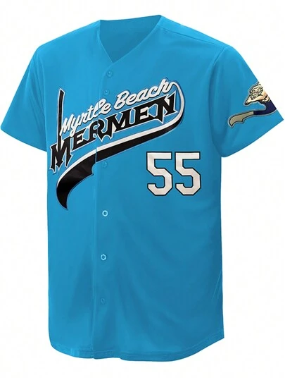 男士棒球球衣襯衫,藍色,紐扣,刺繡運動 T 卹 - 藍色 - 查看 1