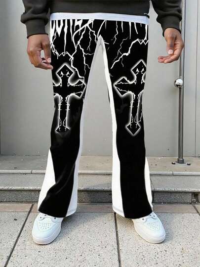 男士休闲拼布喇叭裤 - 彩色 - 查看 1