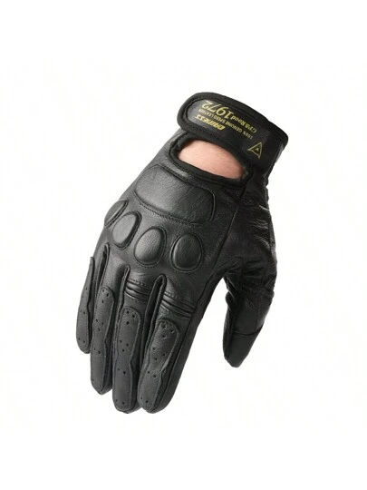 男士牛皮哈雷摩托車騎行手套,防滑,耐磨,觸屏兼容 - 黑色 - 查看 1